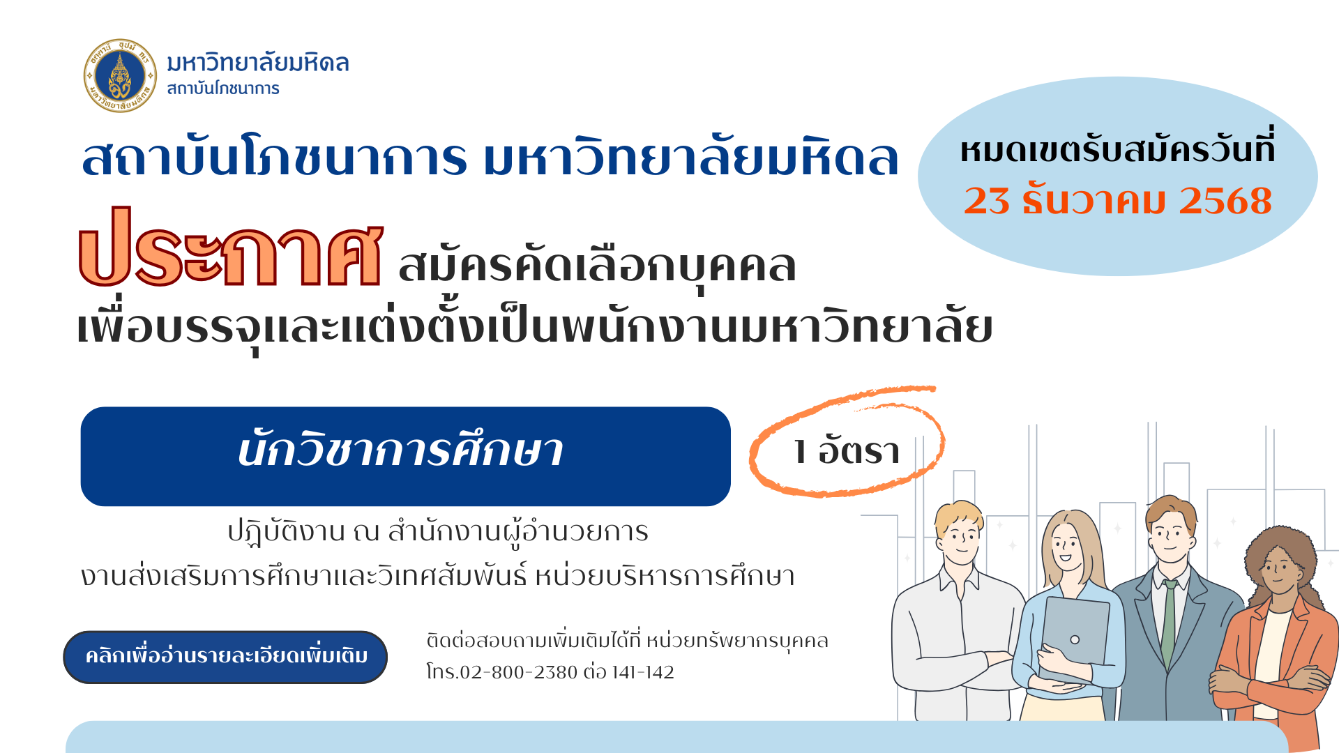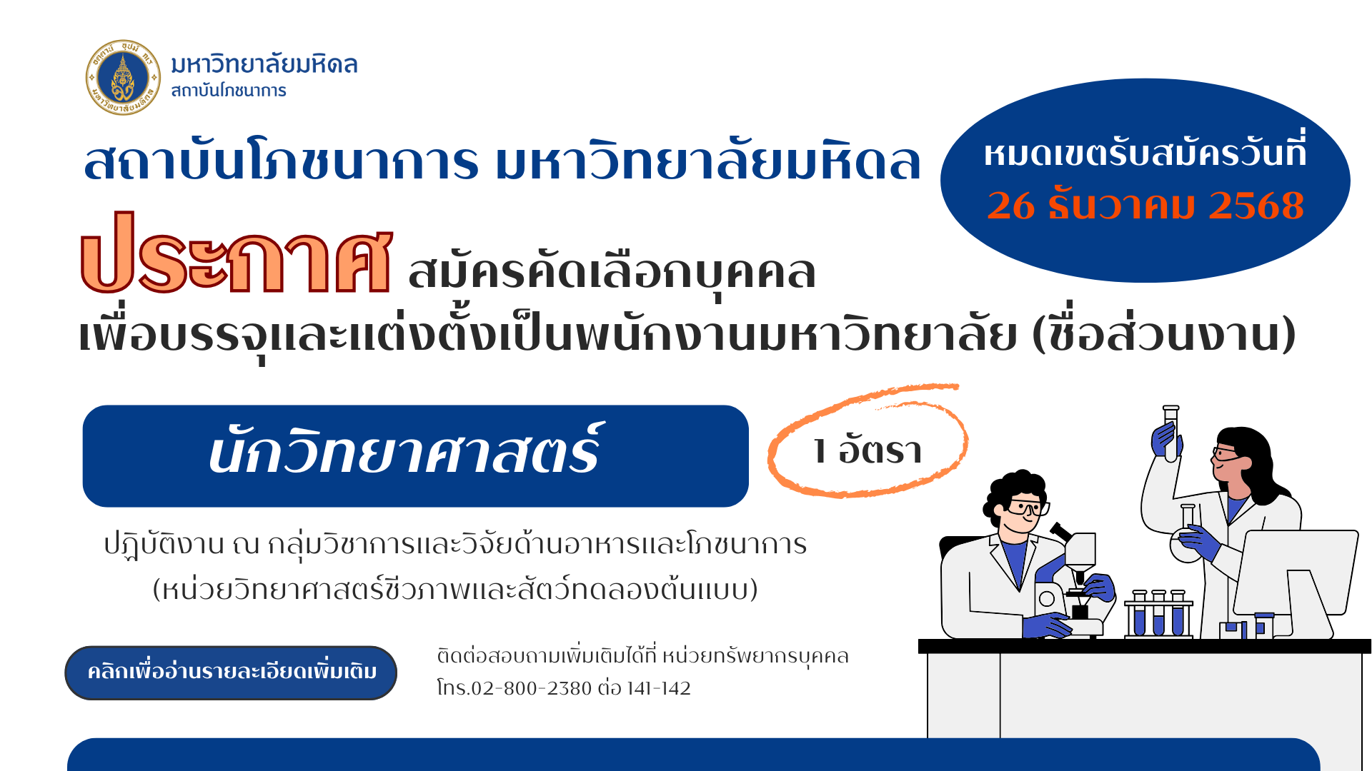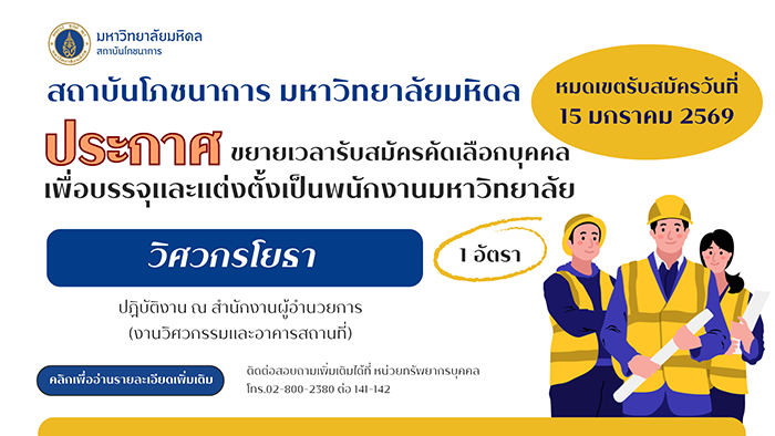 Home Announcements Job-23-12-68Job26-12-68Engineering15-1-6915_016_0Cong_Nilesh News INMU Drives the “Mahidol Wellbeing” Project INMU Collaborates with Thai FDA and Leading Retail Groups to Promote “Healthier Choice” Food Products Mahidol University Holds Merit-Making Ceremony in Remembrance of Her Majesty Queen Sirikit The Queen Mother Read More Quick Links Thai Food Composition ASEANFOODS Thai School Lunch Job Opportunities Institute of Nutrition, Mahidol University.999 Phutthamonthon Sai 4 Road, Salaya,Phutthamonthon, Nakhon Pathom 73170, ThailandTel. +66 2 800 2380 Fax. +66 2 441 9344 Intranet | Web mail | News | Contact