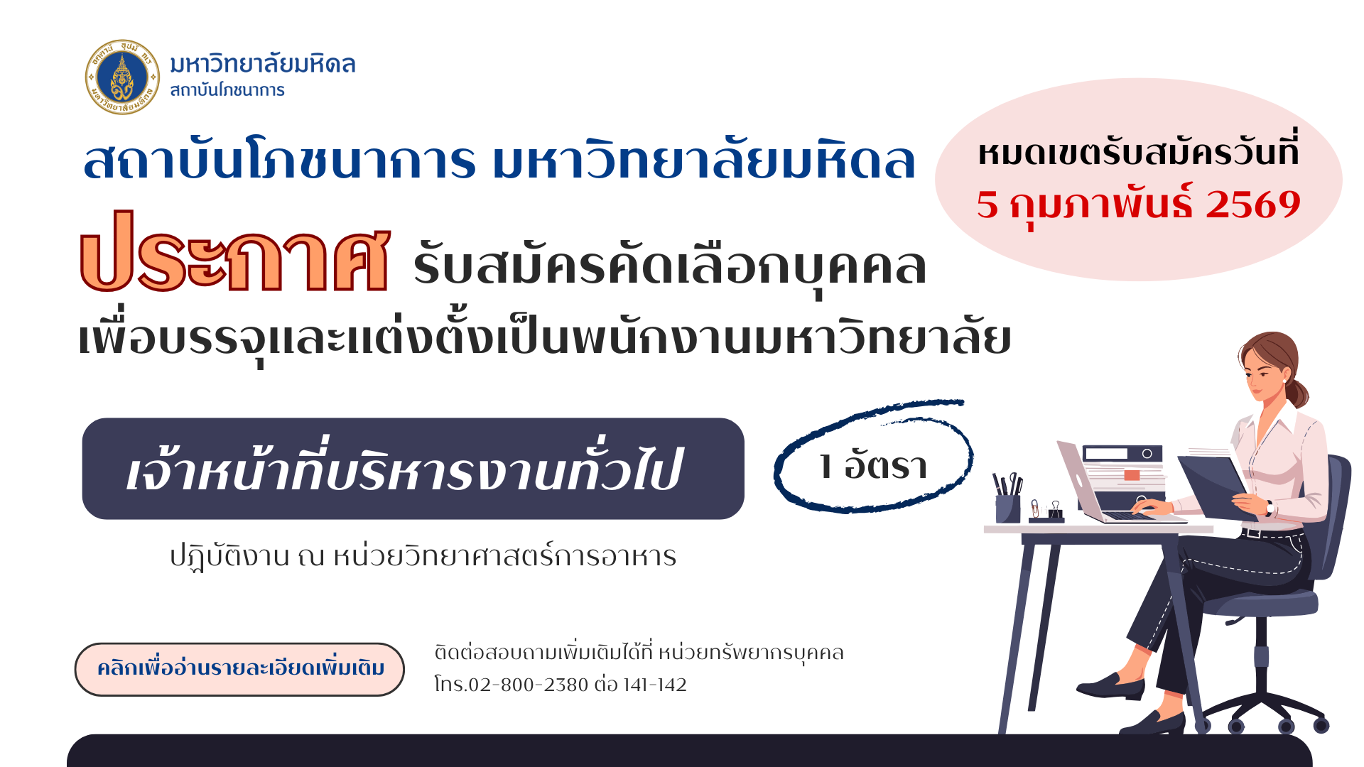 Home Announcements Job30-1-69Job30-1-69Job5-2-6915_016_0Cong_Nilesh News Institute of Nutrition, Mahidol University, Celebrates Its 49th Anniversary Institute of Nutrition, Mahidol University Participates in MOU Signing Ceremony to Support Nutrition and Research for Individuals with Special Needs INMU Conducts Annual ISO/IEC 17025 Laboratory Standards Read More Quick Links Thai Food Composition ASEANFOODS Thai School Lunch Job Opportunities Institute of Nutrition, Mahidol University.999 Phutthamonthon Sai 4 Road, Salaya,Phutthamonthon, Nakhon Pathom 73170, ThailandTel. +66 2 800 2380 Fax. +66 2 441 9344 Intranet | Web mail | News | Contact