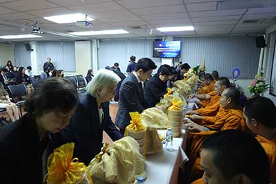 Associate Professor Dr. Chalat Santivarangkna, Director of the Institute of Nutrition, presided over the ceremony. The event was attended by institute advisors, heads of various departments within Mahidol University, and staff members. The program commenced with a Buddhist chanting ceremony, followed by the presentation of awards recognizing individuals for their dedication and significant contributions to the institute’s sustainable development.