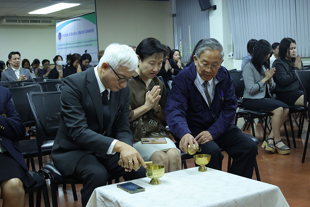 โดยได้รับเกียรติจาก รองศาสตราจารย์ ดร.ชลัท ศานติวรางคณา ผู้อำนวยการสถาบันโภชนาการ เป็นประธานในพิธี พร้อมด้วยที่ปรึกษาสถาบันโภชนาการ บุคลากร หัวหน้าส่วนงานของมหาวิทยาลัยมหิดล เข้าร่วมงานอย่างพร้อมเพรียงกัน ภายในงานจัดพิธีเจริญพระพุทธมนต์ เพื่อความเป็นสิริมงคล จากนั้นมีพิธีมอบรางวัลบุคลากรดีเด่น และอาจารย์ตัวอย่าง ประจำปี 2568 เพื่อเชิดชูเกียรติผู้ที่ปฏิบัติงานด้วยความทุ่มเท เสียสละ และมีบทบาทสำคัญในการพัฒนางาน สะท้อนถึงคุณค่าและศักยภาพของบุคลากรในฐานะกลไกหลักของการพัฒนาองค์กรอย่างยั่งยืน